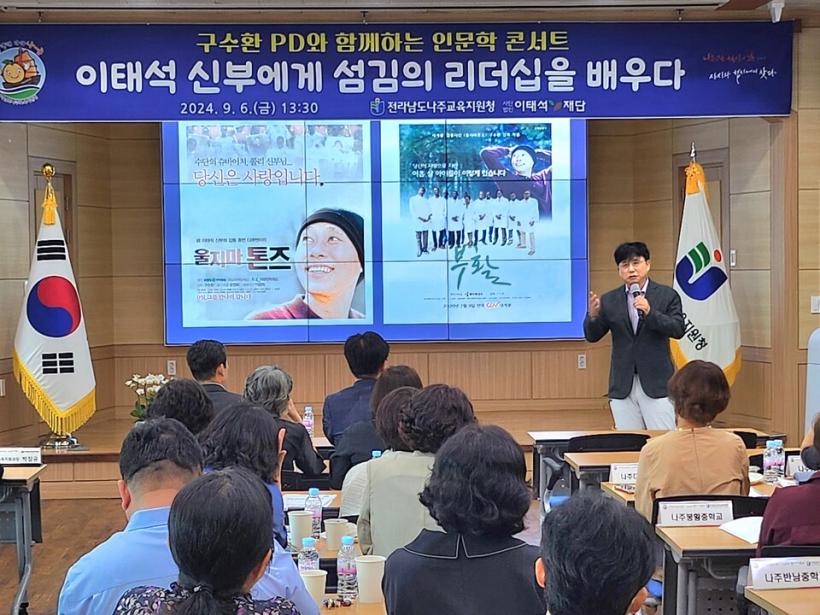 [°ø°£´º½º = ±è¼ö±Ù±âÀÚ] Àü¶ó³²µµ³ªÁÖ±³À°Áö¿øÃ»(±³À°Àå º¯Á¤ºó)Àº Áö³ 9¿ù 6ÀÏ ³ªÁÖ±³À°Áö¿øÃ» ´ëȸÀǽǿ¡¼ ³ªÁÖ °ü³» À¯¡¤ÃÊ¡¤Áß¡¤°í Çб³ÀåÀ» ´ë»óÀ¸·Î ¡®±¸¼öȯPD, Àι®ÇÐ ÄܼƮ¡¯¸¦ ¿¾ú´Ù.
