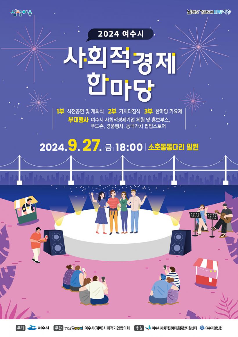 [°ø°£´º½º = ±è¿ëÁø±âÀÚ] ¿©¼ö½Ã(½ÃÀå Á¤±â¸í)´Â ¿À´Â 27ÀÏ ¼ÒÈ£µ¿µ¿´Ù¸® A±¤Àå(¼ÒÈ£µ¿ 498-1¹øÁö) ÀÏ¿ø¿¡¼ ¡®´õ ¹àÀº ³»ÀÏÀ» ¸¸µå´Â Èû, °¡Ä¡ÀÇ ¼±¼øÈ¯À» ÀÌ·ï³»´Â »çȸÀû°æÁ¦¡¯¸¦ ÁÖÁ¦·Î 2024 ¿©¼ö½Ã »çȸÀû°æÁ¦ ÇѸ¶´çÀ» °³ÃÖÇÑ´Ù°í 24ÀÏ ¹àÇû´Ù.