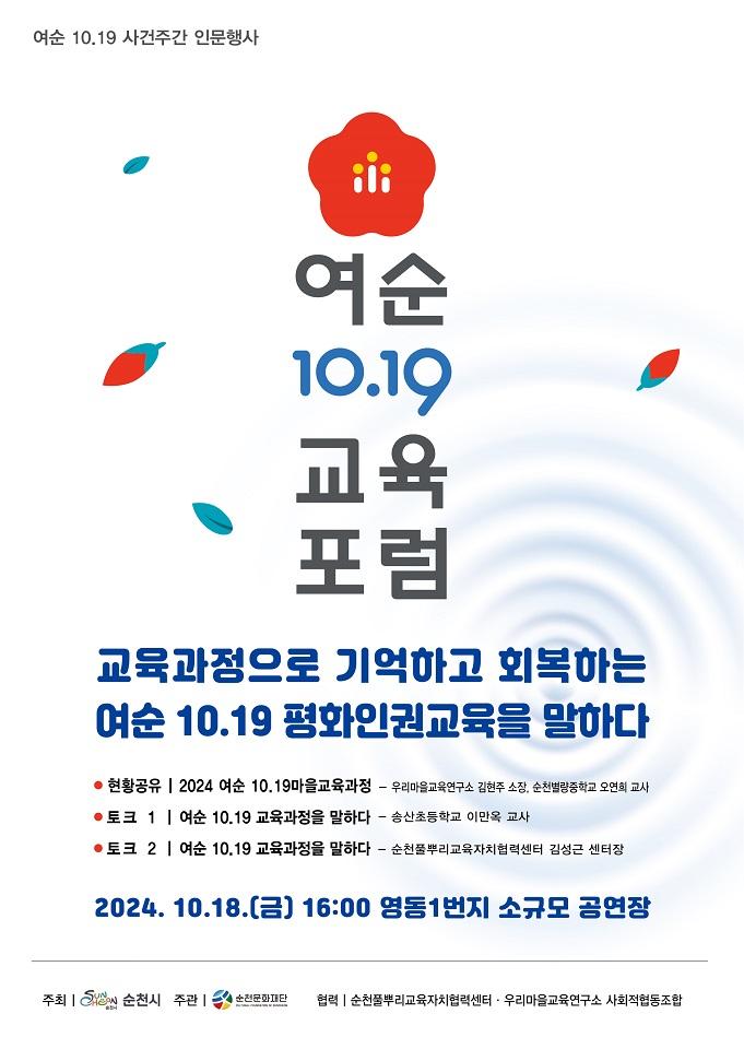 ¿ÃÇØ ¡®¿©¼ø 10¡¤19»ç°ÇÁÖ°£ Àι®Çà»ç¡¯¿¡¼´Â Ã߸ð Àü¾ßÁ¦, ¿©¼ø»ç°Ç ±³À°Æ÷·³, Æòȹ®ÈÇѸ¶´ç, ¿©¼ø»ç°Ç Ưº°Àü½Ã µî ´Ù¾çÇÑ ÇÁ·Î±×·¥ÀÌ ÁøÇàµÈ´Ù.