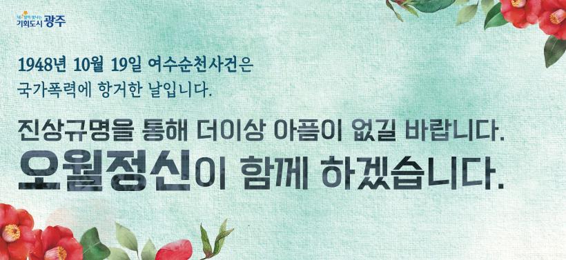 [°ø°£´º½º = ±è¼ö±Ù±âÀÚ] ±¤ÁÖ±¤¿ª½Ã(½ÃÀå °±âÁ¤)´Â 19ÀÏ Á¦76Áֳ⠿©¼ö¡¤¼øÃµ10¡¤19»ç°ÇÀ» ¸Â¾Æ ¡°¿©¼ø»ç°ÇÀÇ Áø½ÇÀÌ º¸´Ù ½Å¼ÓÇÏ°Ô ¹àÇôÁö°í, ¸í¿¹È¸º¹°ú »óóġÀ¯°¡ ÀÌ·ïÁöµµ·Ï ÇÔ²² ³ë·ÂÇϰڴ١±°í ¹àÇû´Ù.