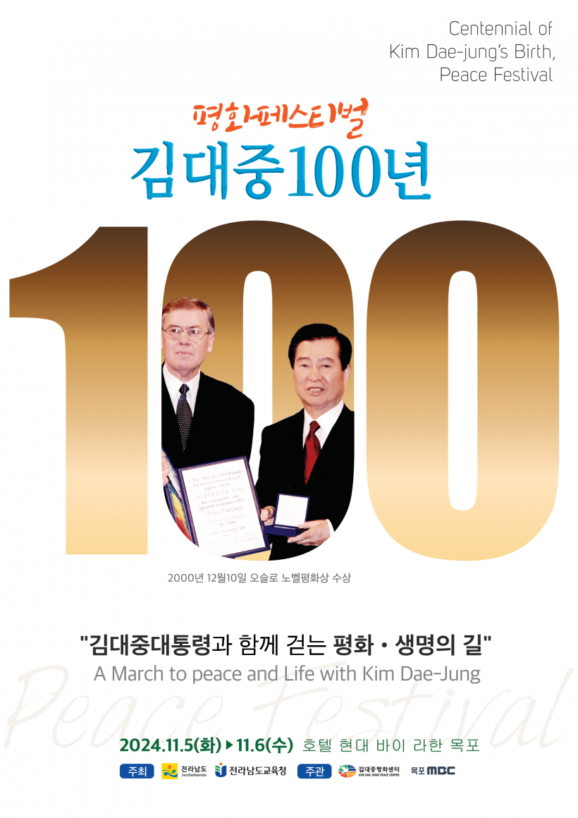 [°ø°£´º½º = ±è¼ö±Ù±âÀÚ] Àü¶ó³²µµ´Â ¿ÃÇØ ±è´ëÁß ´ëÅë·É ź»ý 100ÁÖ³âÀ» ¸Â¾Æ 5~6ÀÏ ¸ñÆ÷¿¡¼ ¡®±è´ëÁß ´ëÅë·É°ú ÇÔ²² °È´Â ÆòÈ¡¤»ý¸íÀÇ ±æ¡¯À» ÁÖÁ¦·Î ¡®±è´ëÁß 100³â ÆòÈÆä½ºÆ¼¹ú¡¯À» °³ÃÖÇÑ´Ù.
