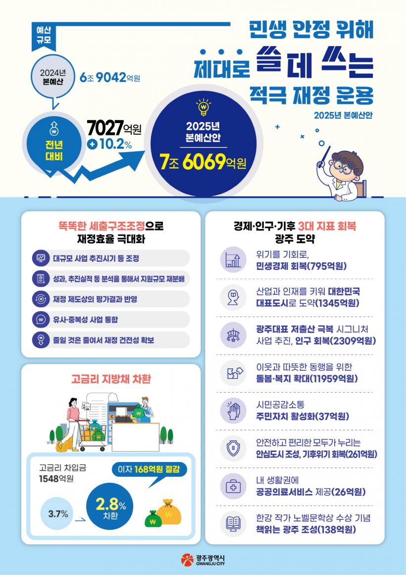 [°ø°£´º½º = ±è¼ö±Ù±âÀÚ] ±¤ÁÖ±¤¿ª½Ã(½ÃÀå °±âÁ¤)´Â 2025³âµµ º»¿¹»ê¾ÈÀ» ¿ÃÇØº¸´Ù 7027¾ï¿ø(10.2%) Áõ°¡ÇÑ 7Á¶6069¾ï¿øÀ» Æí¼º, 11ÀÏ ±¤ÁÖ±¤¿ª½ÃÀÇȸ¿¡ Á¦ÃâÇß´Ù.