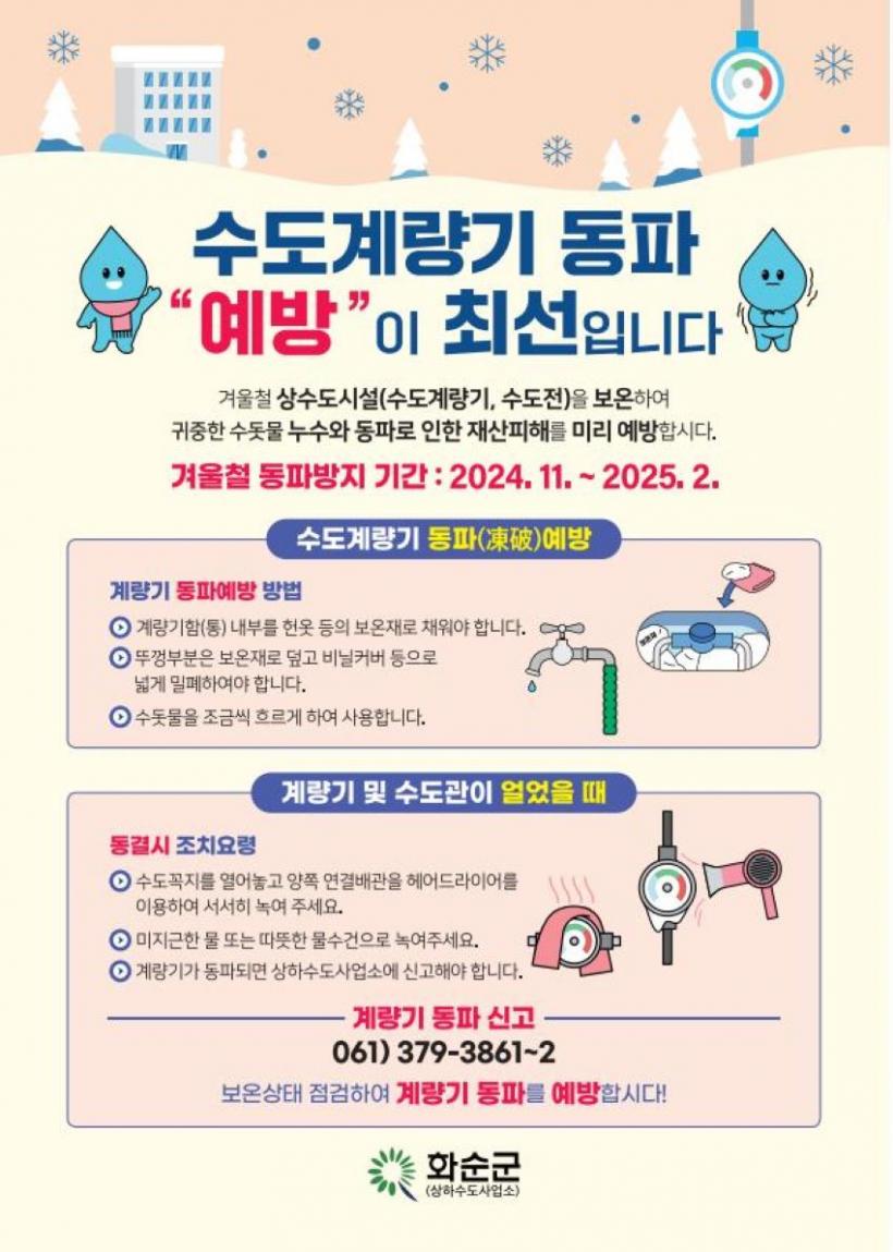 ¹ÚÁ¾¿Á »óÇϼöµµ»ç¾÷¼ÒÀåÀº ¡°°è·®±â µ¿ÆÄ ¿¹¹æÀº °¡Á¤°ú »ç¾÷ü¿¡¼ 1Â÷ ÀûÀ¸·Î Á¶Ä¡ÇÑ´Ù¸é ÃæºÐÈ÷ ¸·À» ¼ö ÀÖ°í, Áö¼ÓµÇ´Â ÇÑÆÄ¿¡ °è·®±â°¡ µ¿ÆÄµÇ¸é ½Å¼ÓÈ÷ ȼø±º »óÇϼöµµ»ç¾÷¼Ò ¹°°ü¸®ÆÀ(¢Ï061-379-3862)¿¡ ½Å°íÇÏ¿© ÁÖ½Ã±æ ¹Ù¶õ´Ù.¡±¶ó°í ´çºÎÇß´Ù.