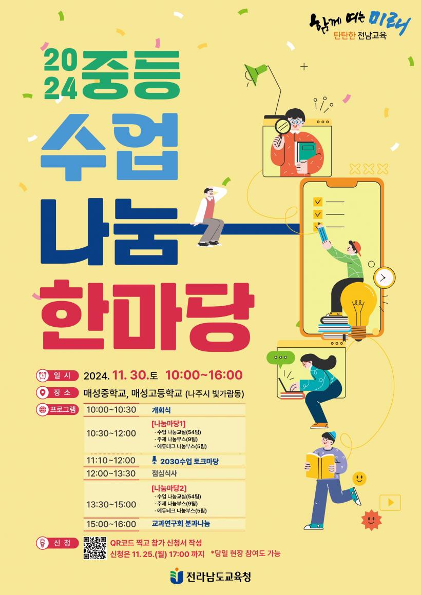 [°ø°£´º½º = ±è¼ö±Ù±âÀÚ] Àü¶ó³²µµ±³À°Ã»(±³À°°¨ ±è´ëÁß)Àº ¿À´Â 11¿ù 30ÀÏ(Åä) ¸Å¼ºÁßÇб³¿Í ¸Å¼º°íµîÇб³¿¡¼ µµ³» ±³¿ø ¹× ±³À°Àü¹®Á÷¿øÀÌ Âü¼®ÇÑ °¡¿îµ¥ ¡®2024 Áßµî ¼ö¾÷³ª´® ÇѸ¶´ç¡¯À» °³ÃÖÇÑ´Ù.