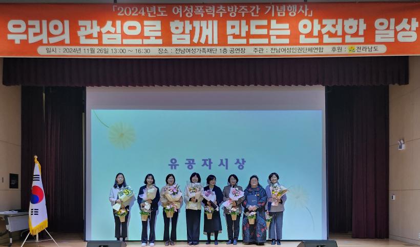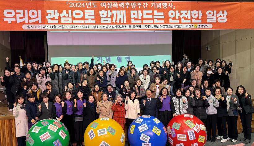 [°ø°£´º½º = ±è¼ö±Ù±âÀÚ] Àü¶ó³²µµ´Â ¿©¼ºÆø·Â Ãß¹æÁÖ°£(11¿ù 25~12¿ù 10ÀÏ)À» ¸Â¾Æ 28ÀÏ Àü³²¿©¼º°¡Á·Àç´Ü¿¡¼ ¿©¼ºÆø·Â ¾ø´Â »çȸ ½Çõ °ø°¨´ë È®»êÀ» À§ÇÑ ´Ùä·Î¿î ±â³äÇà»ç¸¦ °³ÃÖÇß´Ù.