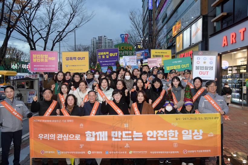 [°ø°£´º½º = ±è¼ö±Ù±âÀÚ] ±¤ÁÖ±¤¿ª½Ã(½ÃÀå °±âÁ¤)´Â ¡®2024³â ¿©¼ºÆø·Â Ãß¹æÁÖ°£(11¿ù25ÀÏ~12¿ù1ÀÏ)¡¯À» ¸Â¾Æ 29ÀÏ Ã·´ÜÁö±¸ LCŸ¿ö ¸¸³²ÀÇ ±¤Àå¿¡¼ ¡®¿ì¸®ÀÇ °ü½ÉÀ¸·Î ÇÔ²² ¸¸µå´Â ¾ÈÀüÇÑ ÀÏ»ó¡¯À» ÁÖÁ¦·Î À¯°ü±â°ü ÇÕµ¿Ä·ÆäÀÎÀ» ½Ç½ÃÇß´Ù.