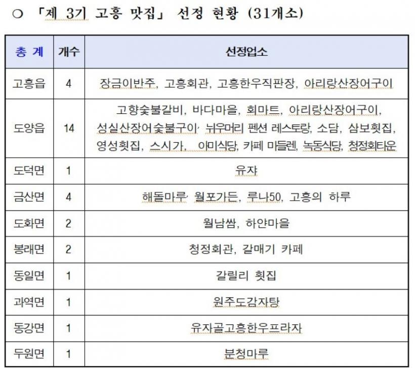[°ø°£´º½º = ±è¿ëÁø±âÀÚ] °íÈﱺ(±º¼ö °ø¿µ¹Î)ÀÌ °íÈïÀ» ´ëÇ¥ÇÒ¡®Á¦3±â °íÈï¸ÀÁý¡¯31°³¼Ò¸¦ ¼±Á¤Çß´Ù. À̹ø¿¡ ¼±Á¤µÈ ¸ÀÁýÀº 2025³â 1¿ùºÎÅÍ 2026³â 12¿ù±îÁö 2³â°£ ¿î¿µµÇ¸ç, °ü±¤ Áöµµ¿Í °ü±¤ ȨÆäÀÌÁö µî ´Ù¾çÇÑ ¸Åü¸¦ ÅëÇØ Àû±ØÀûÀ¸·Î È«º¸µÉ ¿¹Á¤ÀÌ´Ù.