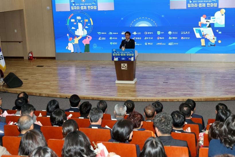 À̳¯ ÀÏÀÚ¸®‧°æÁ¦ ÇѸ¶´ç¿¡´Â ±è¿µ·Ï Áö»ç¿Í ½ÃÀå‧±º¼ö, ±â¾÷ ´ëÇ¥ µî 100¿© ¸íÀÌ Âü¼®ÇÑ °¡¿îµ¥ ÆËÆä¶ó°ø¿¬, ÀÏÀÚ¸® Á¤º¸¸Á ¿µ»ó »ó¿µ, ÀÏÀÚ¸® ¿ì¼ö±â¾÷ ÀÎÁõÆÐ ¼ö¿©, ¿ì¼ö ½Ã‧±º ǥâ ¼ö¿© ¼øÀ¸·Î ÁøÇàµÆ´Ù.