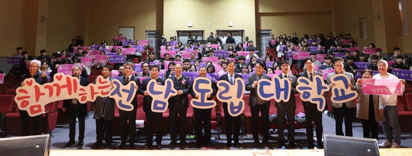 ÀåÇå¹ü Àü³²µµ¸³´ëÇб³ ÃÑÀå Á÷¹«´ëÇàÀº ¡°¼ÒÅë°ú ÈÇÕ ±×¸®°í ÅëÇÕÀÇ ³¯ Çà»ç¸¦ ÅëÇØ Áö¿ª¹Î°ú ±¸¼º¿øµéÀÌ ÅëÇÕ ºñÀüÀ» ½ÇÇöÇϰڴٴ ÀÇÁö¸¦ ´ÙÁö°Ô µÆ´Ù¡±¸ç ¡°ÅëÇÕ ÀÌÈÄ¿¡µµ Áö¿ª»çȸ¿ÍÀÇ Çù·ÂÀ» °ÈÇϰí, Áö¿ª¹Î¿¡°Ô ½ÇÁúÀûÀÎ ÇýÅÃÀ» Á¦°øÇÒ ¼ö ÀÖ´Â ´ëÇÐÀ¸·Î °Åµì³ª°Ú´Ù¡±°í ¸»Çß´Ù.