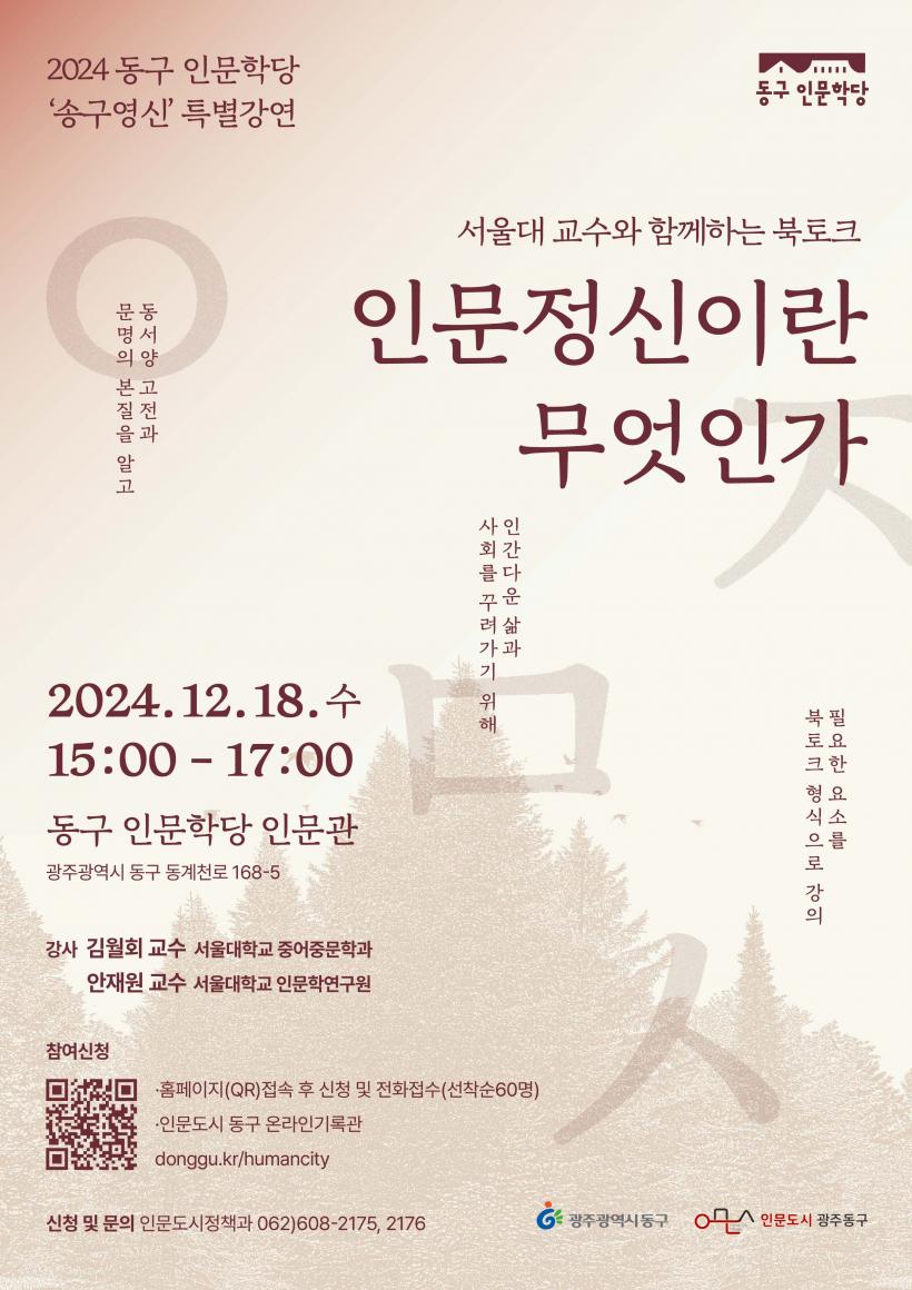 [°ø°£´º½º = ±è´ë¿µ±âÀÚ] ±¤ÁÖ µ¿±¸(±¸Ã»Àå ÀÓÅÃ)´Â 18ÀÏ ¿ÀÈÄ 3½Ã µ¿±¸ Àι®Çд翡¼ µµ¼ ¡®Àι®Á¤½ÅÀ̶õ ¹«¾ùÀΰ¡¡¯ÀÇ °øÀúÀÚ ¼¿ï´ëÇб³ ±è¿ùȸ¡¤¾ÈÀç¿ø ±³¼ö¸¦ ÃÊÃ»ÇØ ¼Û±¸¿µ½Å(áêÏÁçÊãæ) Ưº°°¿¬À» ÆîÄ£´Ù°í ¹àÇû´Ù.