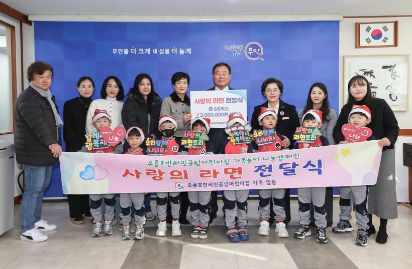 [°ø°£´º½º = Àå¿ÁÁø±âÀÚ] Àü³² ¹«¾È±º(±º¼ö ±è»ê)Àº Áö³ 20ÀÏ ¿À·æÈ£¹Ý½á¹Ô°ø¸³¾î¸°ÀÌÁý¿¡¼ Å©¸®½º¸¶½º¸¦ ¸Â¾Æ ¾ÆÀ̵é°ú ÇÔ²²ÇÑ ¡®»ç¶ûÀÇ ¶ó¸éÆ®¸® ³ª´®Çà»ç¡¯¸¦ ÅëÇØ ¶ó¸é 65¹Ú½º¸¦ ¹«¾È±º¿¡ ±âŹÇß´Ù°í ¹àÇû´Ù.