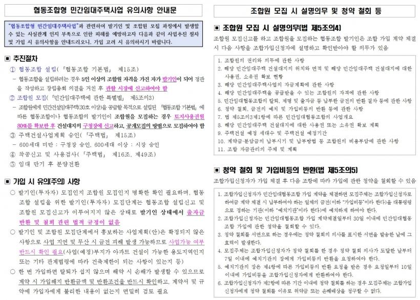 ±¤Áֽô ¹ß±âÀΰú Á¶ÇÕ¿ø ¸ðÁý ´Ü°è¿¡¼ È«º¸µÇ´Â »ç¾÷°èȹÀº È®Á¤µÈ »çÇ×ÀÌ ¾Æ´Ï¹Ç·Î »ç¾÷ Áö¿¬¡¤¹«»ê¿¡ µû¸¥ ±ÝÀüÀû ÇÇÇØ°¡ ¹ß»ýÇÒ ¼ö ÀÖ´Ù°í ¹àÇû´Ù. ƯÈ÷ »ç¾÷(¿¹Á¤) ºÎÁö°¡ ¡®±¹Åä°èȹ¹ý¡¯ µî °ü°è ¹ý·É¿¡ µû¸¥ ¾ÆÆÄÆ® °Ç¼³ÀÌ °¡´ÉÇÑ ºÎÁöÀÎÁö ¿©ºÎ, »ç¾÷°èȹÀÌ ÇãÀ§³ª °úÀåµÈ »çÇ×ÀÌ ¾ø´ÂÁö¸¦ ¹Ýµå½Ã È®ÀÎÇØ¾ß ÇÑ´Ù°í °Á¶Çß´Ù.