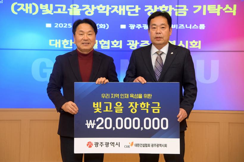 [°ø°£´º½º = ±è¼ö±Ù±âÀÚ] (Àç)ºû°íÀ»ÀåÇÐÀç´Ü(ÀÌ»çÀå °±âÁ¤ ±¤ÁÖ±¤¿ª½ÃÀå)Àº ´ëÇѰǼ³Çùȸ ±¤ÁÖ±¤¿ª½Ãȸ°¡ ¡°Áö¿ª ÀÎÀçÀ°¼ºÀ» À§ÇØ ½á´Þ¶ó¡±¸ç ºû°íÀ»ÀåÇÐ±Ý 2000¸¸¿øÀ» ±âŹÇß´Ù°í 11ÀÏ ¹àÇû´Ù.