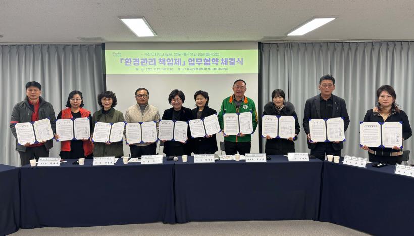 [°ø°£´º½º = ±è´ë¿µ±âÀÚ] ±¤ÁÖ ±¤»ê±¸ ¿ù°î2µ¿(µ¿Àå ÀÌÀçÀº)ÀÌ 28ÀÏ µ¿ ÇàÁ¤º¹Áö¼¾ÅÍ¿¡¼ ÁÖ¹ÎÀÚġȸ µî 10°³ »çȸ´Üü¿Í ¡®È¯°æ°ü¸® Ã¥ÀÓÁ¦ ¿î¿µ¡¯À» À§ÇÑ ¾÷¹«Çù¾àÀ» ü°áÇß´Ù.