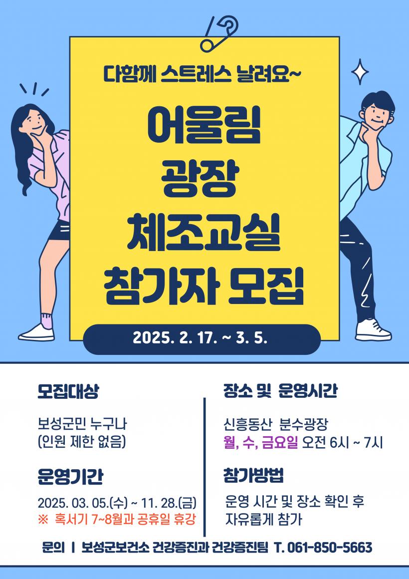 ƯÈ÷, ´ëÇ¥ ÇÁ·Î±×·¥ÀÎ ¡®¾î¿ï¸² ±¤ÀåüÁ¶±³½Ç¡¯Àº ÁֹεéÀÇ ¾ÆÄ§ ½ÅüȰµ¿À» Àå·ÁÇϱâ À§ÇØ ¸ÅÁÖ ¿ù¡¤¼ö¡¤±Ý¿äÀÏ ¿ÀÀü 6½ÃºÎÅÍ 7½Ã±îÁö ½ÅÈﵿ»ê ºÐ¼ö ±¤Àå¿¡¼ ÁøÇàµÈ´Ù.