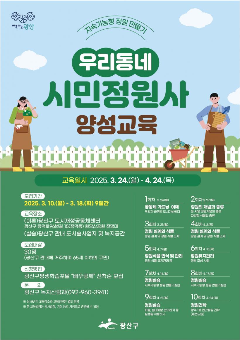±¤»ê±¸´Â ±¤»ê±¸ µµ½ÃÀç»ý°øµ¿Ã¼¼¾ÅÍ¿Í Çù¾÷ÇØ »ó¹Ý±â, ÇϹݱ⠵ΠÂ÷·Ê ¾ç¼º ±³À°À» ¿î¿µÇÑ´Ù. ù »ó¹Ý±â ±³À°Àº 3¿ù 24ÀϺÎÅÍ 4¿ù 24ÀϱîÁö 5ÁÖ°£ ÁøÇàÇÑ´Ù.