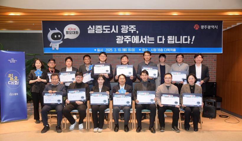 [°ø°£´º½º = ±è¼ö±Ù±âÀÚ] °±âÁ¤ ±¤ÁÖ±¤¿ª½ÃÀåÀº Áö³ 10ÀÏ ¿ÀÈÄ ½Ãû ´Ù¸ñÀûȦ¿¡¼ ¡®½ÇÁõµµ½Ã ±¤ÁÖ, ±¤ÁÖ¿¡¼´Â ´Ù µË´Ï´Ù!¡¯¸¦ ÁÖÁ¦·Î ¡®43¹øÂ° ¿ù¿ä´ëÈ¡¯¸¦ ÁøÇàÇß´Ù.