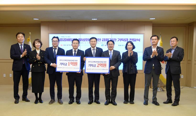 À̹ø ±âŹ±Ý Àü´Þ½ÄÀº °±âÁ¤ ±¤ÁÖ½ÃÀå, °íº´ÀÏ ±¤ÁÖÀºÇàÀå, ÀåÀ翵 NH³óÇùÀºÇà ±¤ÁÖº»ºÎÀå, ±èÇö¼º ±¤ÁÖ°æÁ¦ÁøÈï»ó»ýÀÏÀÚ¸®Àç´Ü ´ëÇ¥À̻簡 Âü¼®Çß´Ù.