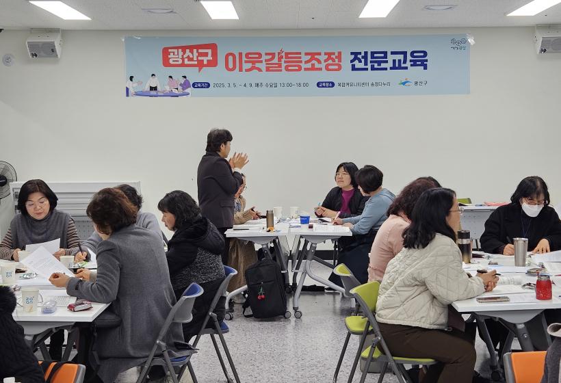 [°ø°£´º½º = ±è´ë¿µ±âÀÚ] ±¤ÁÖ ±¤»ê±¸(±¸Ã»Àå ¹Úº´±Ô)´Â Ãþ°£¼ÒÀ½, Èí¿¬ µîÀ¸·Î ÀÎÇÑ ÁֹΠ°¥µî ÇØ°áÀ» Áö¿øÇÏ´Â ÀÌ¿ô°¥µî Á¶Á¤°¡ÀÇ ½ÇÀü ¿ª·®À» °ÈÇÏ´Â Àü¹®±³À°À» ¿î¿µÇϰí ÀÖ´Ù°í ¹àÇû´Ù. ÀÌ´Â Áö³ 2018³âºÎÅÍ ±¤»ê±¸°¡ ÁøÇàÇϰí ÀÖ´Â ÀÌ¿ô°¥µî Á¶Á¤°¡ ¾ç¼º ±³À°ÀÇ Çϳª´Ù.