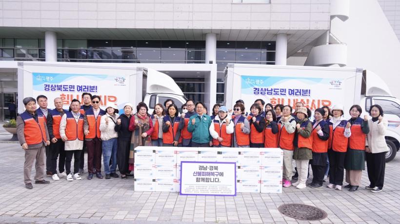 °±âÁ¤ ±¤ÁÖ½ÃÀåÀº ¡°À̹ø »êºÒ·Î Èñ»ýµÈ ºÐµéÀÇ ¸íº¹À» ºô¸ç, ÇÇÇØ·Î ¾î·Á¿òÀ» °Þ°í ÀÖ´Â Áö¿ª¹Îµé¿¡°Ôµµ À§·ÎÀÇ ¸»¾¸À» µå¸°´Ù¡±¸ç ¡°±¤ÁÖÀÇ ¿Â±â¸¦ ´ãÀº ±¸È£¹°Ç°°ú ¼º±ÝÀÌ »êºÒ ÇÇÇØÁö¿ª º¹±¸¿Í Áö¿ª»çȸ ¾ÈÁ¤¿¡ µµ¿òÀÌ µÇ±æ ¹Ù¶õ´Ù¡±°í ¸»Çß´Ù.