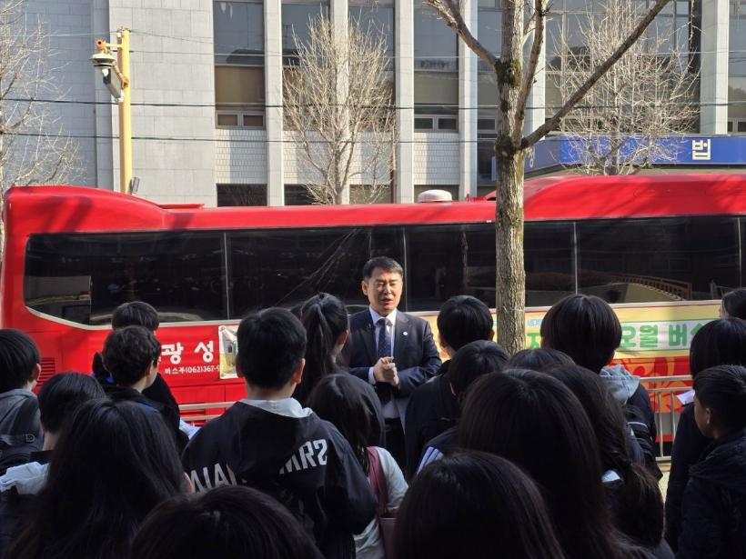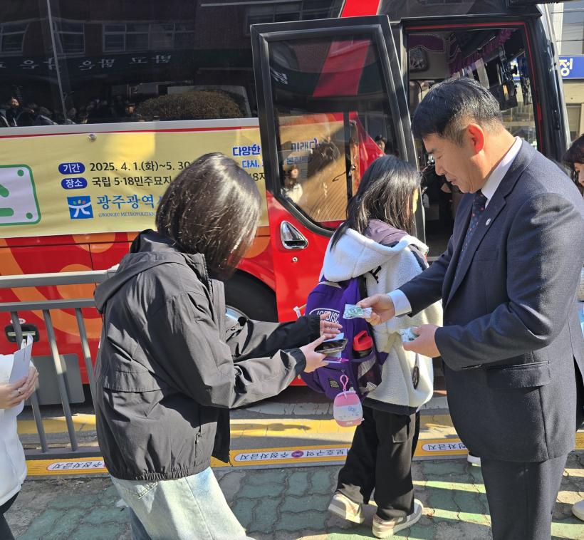 ±¤ÁÖÇлýµéÀÌ ±¤Áֽñ³À°Ã»(±³À°°¨ ÀÌÁ¤¼±)ÀÌ 2ÀÏ Ã³À½À¸·Î ¿îÇàÇÑ 5¡¤18 »çÀûÁö Ž¹æ ¡®¿À¿ù ¹ö½º¡¯¸¦ Ÿ°í 5¡¤18 »çÀûÁö¸¦ µÑ·¯ºÃ´Ù.