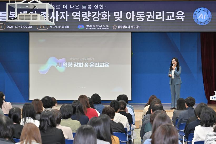 [°ø°£´º½º = ±è´ë¿µ±âÀÚ] ±¤ÁÖ±¤¿ª½Ã ¼±¸(±¸Ã»Àå ±èÀ̰)´Â 9ÀÏ Áö¿ª¾Æµ¿¼¾ÅÍ ¹× ´ÙÇÔ²²µ¹º½¼¾ÅÍ Á¾»çÀÚ 80¸íÀÌ Âü¼®ÇÑ °¡¿îµ¥ »ý¼ºÇü ÀΰøÁö´É(AI) Ȱ¿ë¹ý°ú ÇÔ²² ¾Æµ¿ ±Ç¸® ±³À°À» ÁøÇàÇß´Ù.