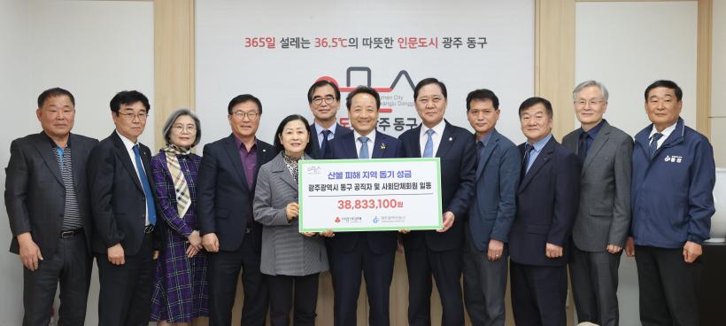 [°ø°£´º½º = ±è´ë¿µ±âÀÚ] ±¤ÁÖ µ¿±¸(±¸Ã»Àå ÀÓÅÃ)´Â ÃÖ±Ù ¿µ³²¡¤ºÏ Áö¿ª¿¡ ¹ß»ýÇÑ ´ë±Ô¸ð »êºÒ·Î ÀÎÇØ ÇÇÇØ¸¦ ÀÔÀº ÁֹεéÀ» µ½±â À§ÇÑ ¼º±Ý ¸ð±ÝÀ» ÁøÇà, 16ÀÏ »çȸº¹Áö°øµ¿¸ð±Ýȸ¿¡ 3,883¸¸ 3õ100¿øÀ» Àü´ÞÇß´Ù°í ¹àÇû´Ù.