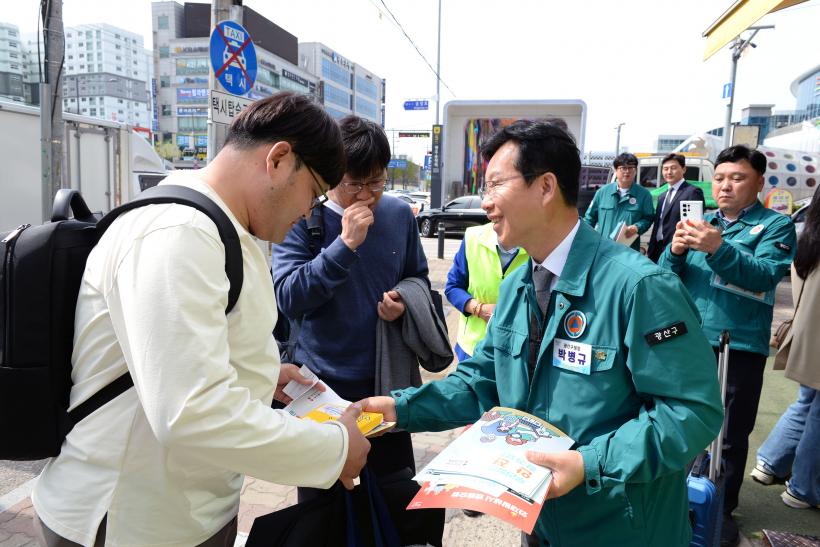 [°ø°£´º½º = ±è´ë¿µ±âÀÚ] ±¤ÁÖ ±¤»ê±¸(±¸Ã»Àå ¹Úº´±Ô)°¡ 18ÀÏ ¾ÈÀüÁ¡°ËÀÇ ³¯À» ¸Â¾Æ ±¤ÁÖ¼ÛÁ¤¿ª¿¡¼ ½Ã¹Îµé°ú ÇÔ²² ÈÀ翹¹æ Ä·ÆäÀÎÀ» ÁøÇàÇß´Ù.