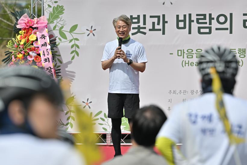 [°ø°£´º½º = ±è´ë¿µ±âÀÚ] Àå¾ÖÀÎÀÇ ³¯(4.20)À» ÇÏ·ç ¾ÕµÐ Áö³ 19ÀÏ ¿ÀÈÄ, ±¤ÁÖ±¤¿ª½Ã ¼±¸ ¿µ»ê° ÀÚÀü°Å±æÀÌ ¡®ºû°ú ¹Ù¶÷ÀÇ ¶óÀ̵ù – ¸¶À½À» ÀÕ´Â µ¿Ç࡯ Çà»ç·Î È»çÇÏ°Ô ¹°µé¾ú´Ù.
