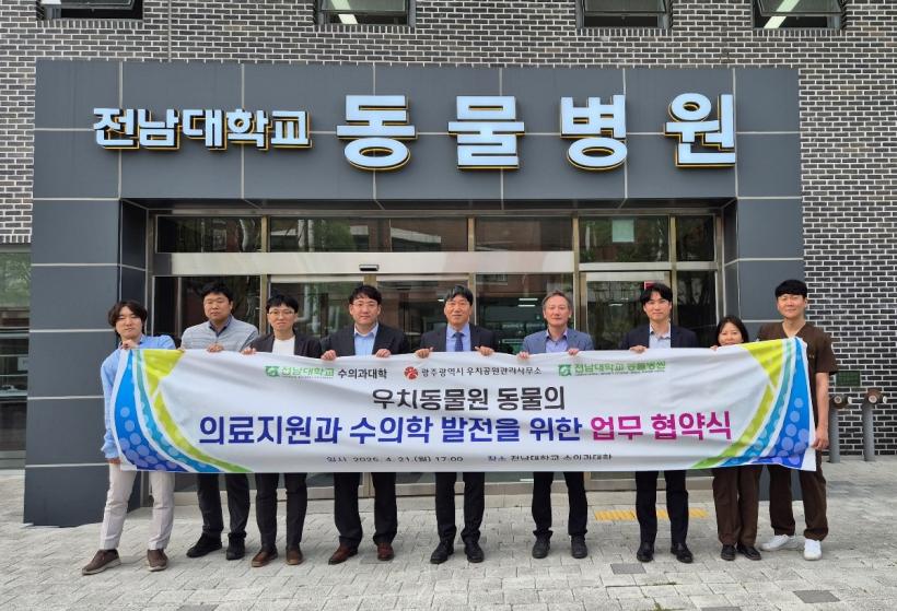 [°ø°£´º½º = ±è¼ö±Ù±âÀÚ] ±¤ÁÖ±¤¿ª½Ã ¿ìÄ¡°ø¿ø°ü¸®»ç¹«¼Ò¿Í Àü³²´ëÇб³ ¼öÀǰú´ëÇÐ, Àü³²´ëÇб³µ¿¹°º´¿øÀº Áö³ 21ÀÏ ¿ÀÈÄ Àü³²´ë ¼öÀǰú´ëÇп¡¼ ¡®µ¿¹°º¹Áö Çâ»ó ¹× ¼öÀÇÇÐ ¹ßÀüÀ» À§ÇÑ ¾÷¹«Çù¾à¡¯À» ü°áÇß´Ù.