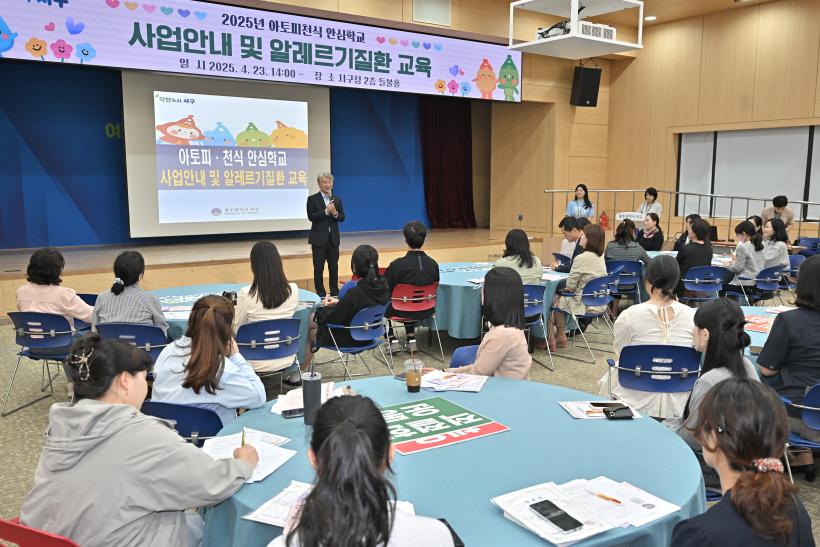 ¼±¸´Â 23ÀÏ ¼±¸Ã» µéºÒȦ¿¡¼ ¾È½ÉÇб³·Î ÁöÁ¤µÈ ±â°üÀÇ º¸°Ç ․ º¸À°±³»ç 50¿© ¸íÀ» ´ë»óÀ¸·Î »ç¾÷ ¾È³»¿Í °¿¬ ½Ã°£À» °®°í »ç¾÷ ÃëÁö¿Í ¿î¿µ ¹æÇâÀ» °øÀ¯Çß´Ù. À̳¯ ±³À°¿¡´Â ¾çÇüä Àü³²´ëº´¿ø ±³¼ö°¡ ¡®¾Ë·¹¸£±âºñ¿°ÀÇ ÀÌÇØ¿Í °ü¸®¡¯¸¦ ÁÖÁ¦·Î °¿¬À» ÆîÃÄ Á¶±â Ä¡·á¿Í ¸é¿ª °ü¸®ÀÇ Á߿伺À» ¾Ë·È´Ù.