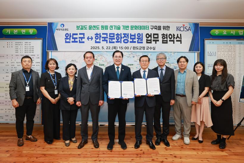 [°ø°£´º½º = Çѵ¿¼ø±âÀÚ] ¿Ïµµ±º(±º¼ö ½Å¿ìö)Àº Áö³ 22ÀÏ Çѱ¹¹®ÈÁ¤º¸¿ø(¿øÀå Á¤¿îÇö)°ú ¡®2025³â ½Å±â¼ú ±â¹Ý ¹®È µ¥ÀÌÅÍ ±¸Ãà »ç¾÷¡¯¿¡ ´ëÇÑ ¾÷¹« Çù¾àÀ» ü°áÇß´Ù.