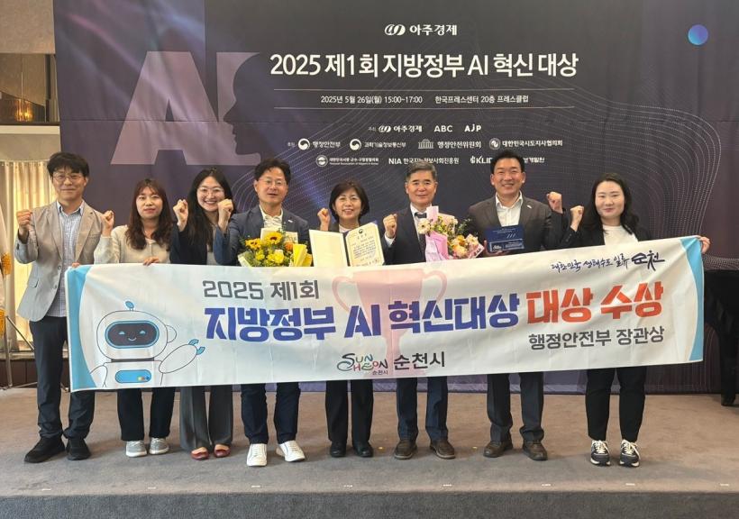 [°ø°£´º½º = ±è¿ëÁø±âÀÚ] ¼øÃµ½Ã(½ÃÀå ³ë°ü±Ô)´Â Áö³ 26ÀÏ ¼¿ï Çѱ¹ÇÁ·¹½º¼¾ÅÍ¿¡¼ ¿¸° ¡®Á¦1ȸ Áö¹æÁ¤ºÎ AI Çõ½Å ´ë»ó¡¯¿¡¼ ±âÃÊÁöÀÚü ºÎ¹® ´ë»óÀ» ¼ö»óÇϸç ÇàÁ¤¾ÈÀüºÎ Àå°ü»óÀ» ¹Þ¾Ò´Ù°í ¹àÇû´Ù.