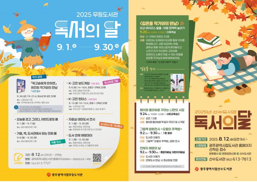 ¹«µîµµ¼°üÀº 9¿ù 1ÀϺÎÅÍ ¾î¹Ýµå·ÎÀ×, ¹ÎÈ ÀÛǰ °¶·¯¸® Àü½Ã¿Í ÀÚ·á½Ç Å׸¶µµ¼ Àü½Ã¸¦ ½ÃÀÛÀ¸·Î ¡ã9¿ù 6¡¤13ÀÏ K-°íÀü Ư°(ÃʵîÇлý ´ë»ó) ¡ã9¿ù26ÀÏ ÇãÁøÈñ ÀÛ°¡ °¿¬ ¡®¸¸¾à¿¡ ³îÀÌ·Î ½ÃÀÛÇÏ´Â ¿¸° »ó»ó¡¯ µî 7°³ ÇÁ·Î±×·¥À» ÁغñÇß´Ù.