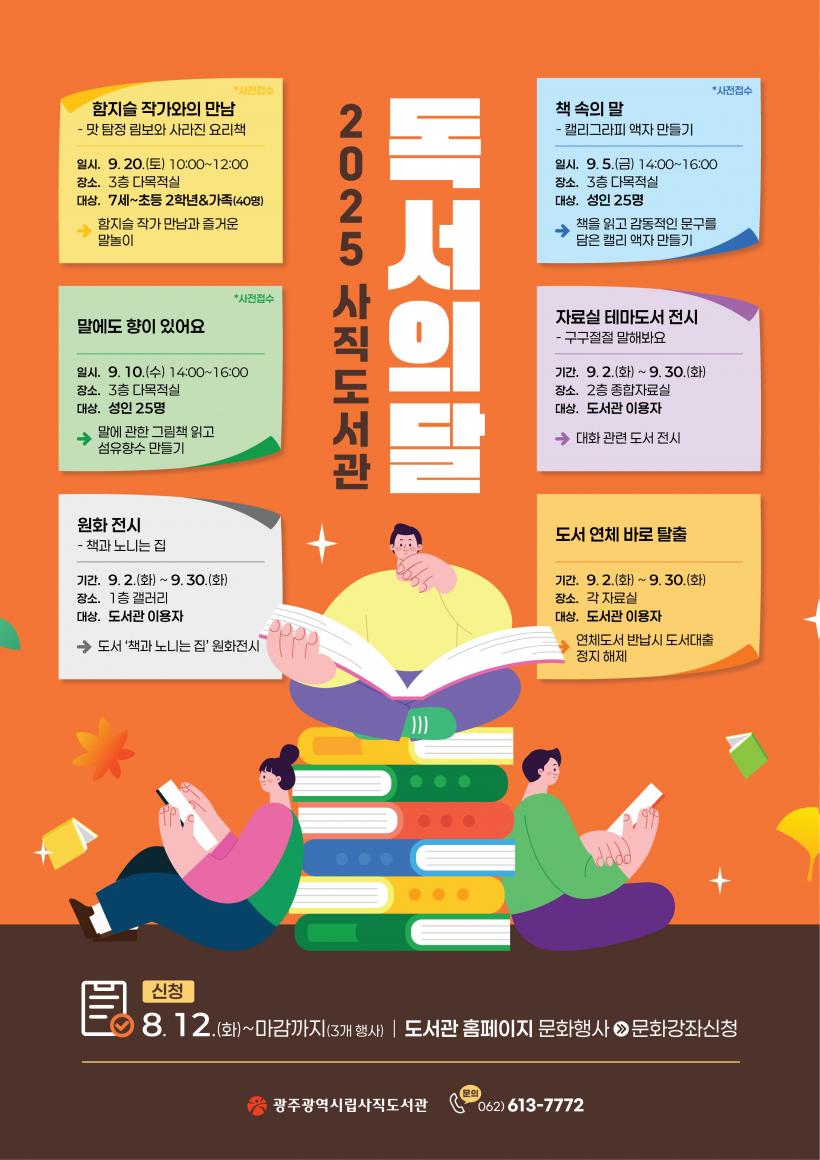 »çÁ÷µµ¼°üÀº 9¿ù 2ÀϺÎÅÍ ±×¸²Ã¥ ¿øÈÀü ¡®Ã¥°ú ³ë´Ï´Â Áý¡¯ Àü½Ã¿Í ÀÚ·á½Ç Å׸¶µµ¼ Àü½Ã¸¦ ÁøÇàÇÑ´Ù. ¡ã9¿ù 5¡¤10ÀÏ Ä¶¸®±×¶óÇÇ ¾×ÀÚ, ¼¶À¯ Çâ¼ö ¸¸µé±â üÇè ¡ã9¿ù20ÀÏ ÇÔÁö½½ ÀÛ°¡ °¿¬ ¡®¸À ŽÁ¤ ¸²º¸¿Í »ç¶óÁø ¿ä¸®Ã¥¡¯ µî 6°³ Çà»ç¸¦ ¿î¿µÇÑ´Ù.