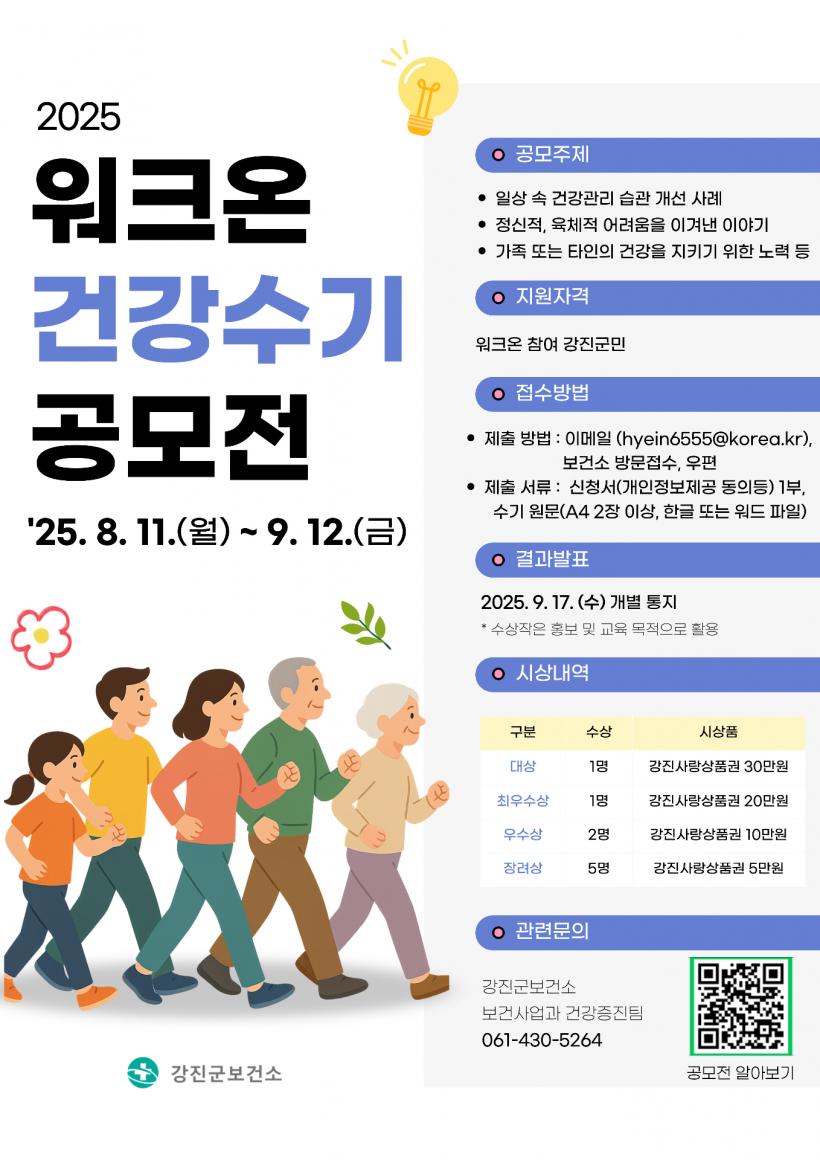 ¿öÅ©¿Â ÇÁ·Î±×·¥¿¡ Âü¿©ÇÏ´Â °Áø±º¹ÎÀÌ¸é ´©±¸³ª °ø¸ðÇÒ ¼ö ÀÖÀ¸¸ç, °ø¸ð ÁÖÁ¦´Â °È±â¸¦ ÅëÇØ ¾òÀº °Ç°°ü¸® ½À°ü °³¼± ¹× ¼º°ø»ç·Ê µîÀÌ´Ù. ¶ÇÇÑ, °Ç°½À°ü °³¼±À¸·Î ÀÎÇÑ »îÀÇ º¯È, ±àÁ¤ÀûÀÎ °æÇè´ãµµ ÁÁÀº ³»¿ëÀÌ µÉ ¼ö ÀÖ´Ù.