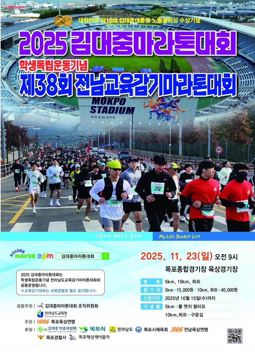 [°ø°£´º½º = ¹Ú¼º¿Á±âÀÚ] ¸ñÆ÷½Ã´Â ¿À´Â 11¿ù 23ÀÏ ¸ñÆ÷Á¾ÇÕ°æ±âÀå¿¡¼ ¿¸®´Â ¡®2025 ±è´ëÁ߸¶¶óÅæ´ëȸ¡¯ Âü°¡½ÅûÀ» 9¿ù 1ÀϺÎÅÍ 10¿ù 15ÀϱîÁö ¼±Âø¼øÀ¸·Î Á¢¼öÇÑ´Ù°í ¹àÇû´Ù.