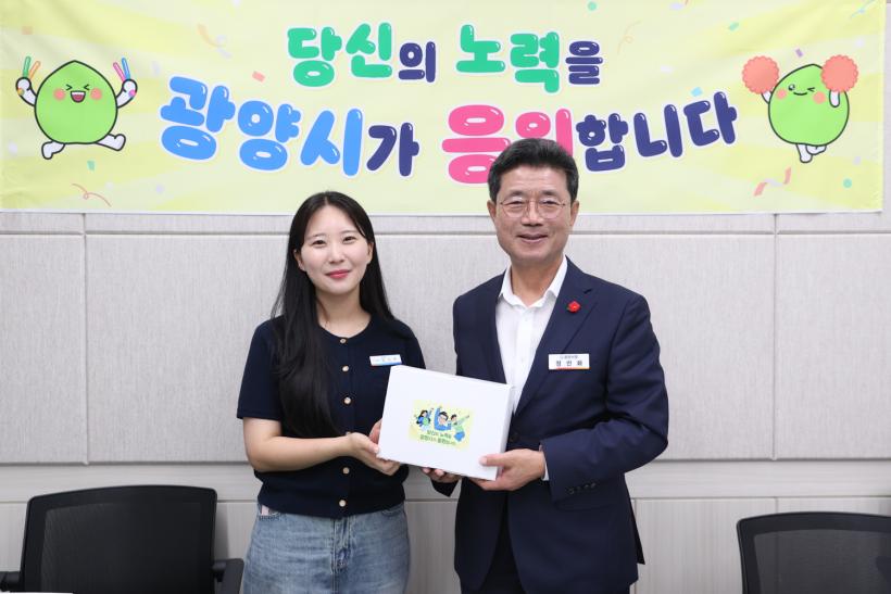 ¡®±¤¾ç½Ã°¡ ÀÀ¿øÇÕ´Ï´Ù¡¯´Â ±¤¾ç½ÃÀåÀÌ ¸Å¿ù ÇÑ ºÎ¼¸¦ ã¾Æ Á÷¿øµéÀÇ ¾Ö·Î»çÇ×À» ûÃëÇϰí, ÀÚÀ¯·Ó°Ô ÀǰßÀ» ³ª´©´Â Á÷¿ø ¼ÒÅë Çà»ç´Ù. À̹ø¿¡ ¹æ¹®ÇÑ °ø¿ø°ú´Â Ư»ö ÀÖ´Â ¸íǰ °ø¿ø Á¶¼º, ģȯ°æ ³ì»ö°ø°£ È®´ë, ½Ã¹Î Ä£ÈÀû °ø¿ø¹®È È®»ê, ¿©¸§Ã¶ ¹°³îÀÌÅÍ ¿î¿µ µîÀ» ÅëÇØ ½Ã¹Î °Ç° ÁõÁø°ú »îÀÇ Áú Çâ»ó¿¡ ±â¿©Çϰí ÀÖ´Â ºÎ¼´Ù. Á¤ ½ÃÀåÀº ¡®Áö¼Ó °¡´ÉÇÑ ³ì»ö µµ½Ã ±¤¾ç¡¯À» À§ÇØ Èû¾²´Â Á÷¿øµéÀ» °Ý·ÁÇÏ¸ç °£½ÄÀ» Àü´ÞÇß´Ù.