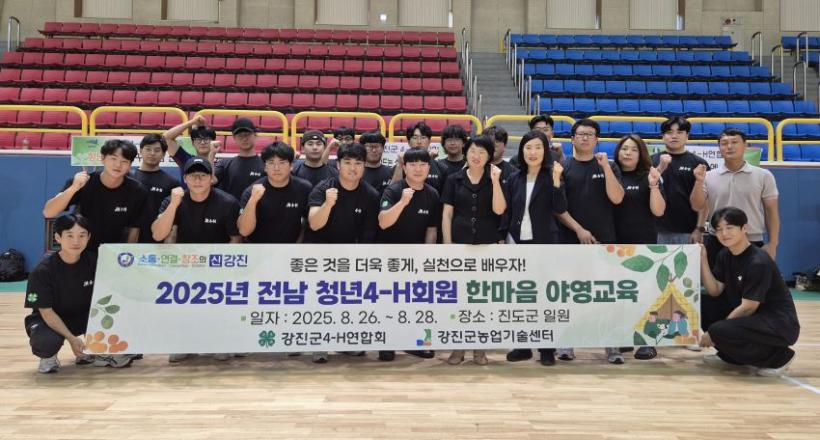[°ø°£´º½º = ¹Ú¼º¿Á±âÀÚ] °Áø±º4-H¿¬ÇÕȸ(ȸÀå ¼Ûµµ¿ì)°¡ Áö³ 8¿ù 26ÀϺÎÅÍ 28ÀϱîÁö 3Àϰ£ Áøµµ±º½Ç³»Ã¼À°°ü ÀÏ¿ø¿¡¼ ¿¸®´Â ¡®2025³â Àü³² û³â4-Hȸ¿ø ÇѸ¶À½ ¾ß¿µ±³À°¡¯¿¡ Âü°¡Çß´Ù. À̹ø Çà»ç´Â Àü¶ó³²µµ¿Í Áøµµ±ºÀÌ ÁÖÃÖÇϰí, Àü³² 22°³ ½Ã±º û³â4-Hȸ¿øÀÌ ÇÔ²² ¸ð¿© ¹Ì·¡ ³ó¾÷ÀÇ ºñÀüÀ» °øÀ¯Çϴ û³â ÃàÁ¦ÀÇ ÀåÀÌ´Ù