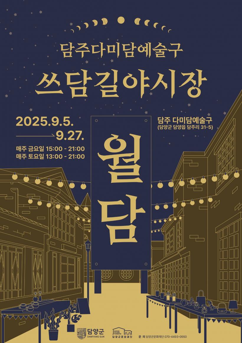 [°ø°£´º½º = ±è¼ö±Ù±âÀÚ] (Àç)´ã¾ç±º¹®ÈÀç´Ü(ÀÌ»çÀå Á¤Ã¶¿ø, ÀÌÇÏ Àç´Ü)Àº ´Ù°¡¿Â °¡À»¹ã, ´ã¾çÀÇ Áö³ª¿Â ½Ã°£°ú ±â¾ïÀ» ǰÀº ´Ù¹Ì´ã ¿¹¼ú±¸¿¡¼ 2025 ´ãÁÖ ´Ù¹Ì´ã¿¹¼ú±¸¡®¾²´ã±æ ¾ß½ÃÀå ¿ù´ã¡¯Çà»ç¸¦ 9¿ù 5ÀÏ °³¸·½ÄÀ» ½ÃÀÛÀ¸·Î 9¿ù 27ÀϱîÁö ¸ÅÁÖ ±Ý,Åä ÃÑ 8ȸ¿¡ °ÉÃÄ °³ÃÖÇÑ´Ù.