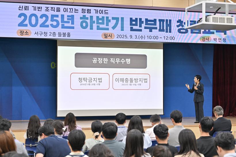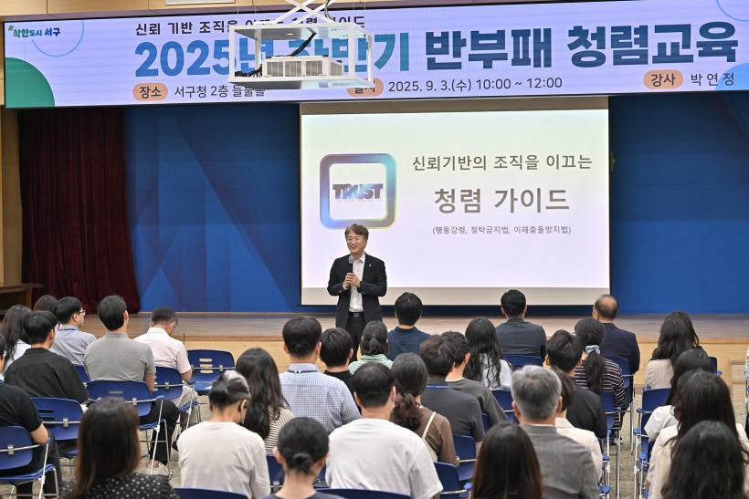 ±¤ÁÖ ¼±¸(±¸Ã»Àå ±èÀ̰)´Â 3ÀÏ ¼±¸Ã» µéºÒȦ¿¡¼ Á÷¿ø ´ë»óÀ¸·Î '½Å·Ú ±â¹Ý Á¶Á÷À» À̲ô´Â û·Å °¡À̵å' ÁÖÁ¦·Î ÇÏ¹Ý±â ¹ÝºÎÆÐ Ã»·Å±³À°À» ½Ç½ÃÇß´Ù.