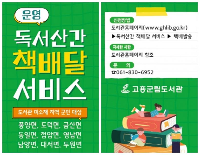 Ã¥ ¹è´Þ ¼ºñ½º´Â µµ¼°ü ÀÌ¿ëÀÌ ¾î·Á¿î dz¾ç¸é, µµ´ö¸é, ±Ý»ê¸é, µ¿Àϸé, Á¡¾Ï¸é, ¿µ³²¸é, ´ë¼¸é, µÎ¿ø¸é µî 9°³ ¸é Áö¿ª ÁÖ¹ÎÀ» ´ë»óÀ¸·Î Çϸç, °íÈﱺ¸³µµ¼°ü ȨÆäÀÌÁö¸¦ ÅëÇØ ½ÅûÇÏ¸é ¿øÇϴ åÀ» °¡Á¤±îÁö ¹«·á·Î ¹è¼Û¹ÞÀ» ¼ö ÀÖ´Ù.