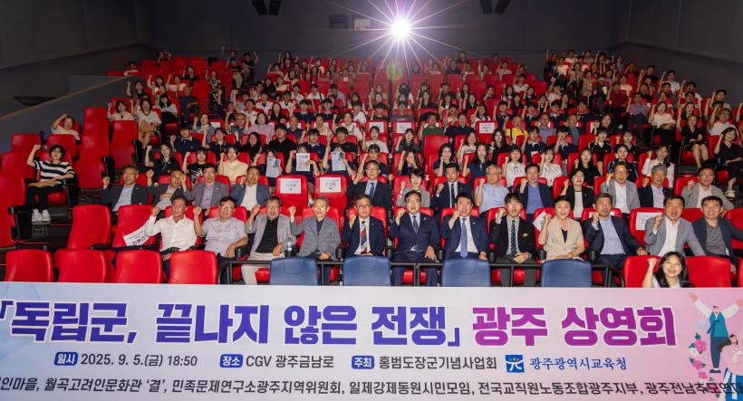 [°ø°£´º½º = ±è¼ö±Ù±âÀÚ] ±¤Áֽñ³À°Ã»(±³À°°¨ ÀÌÁ¤¼±)Àº ±¤º¹ 80ÁÖ³âÀ» ¸Â¾Æ Áö³ 5ÀÏ CGV±¤Áֱݳ²·Î¿¡¼ ´ÙÅ¥¸àÅ͸® ¿µÈ ¡®µ¶¸³±º, ³¡³ªÁö ¾Ê´Â ÀüÀ »ó¿µÈ¸¸¦ °³ÃÖÇß´Ù.