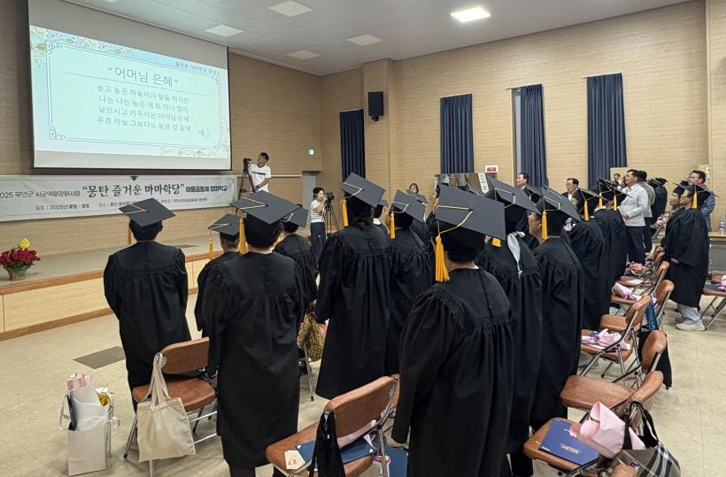 [°ø°£´º½º = ¹Ú¼º¿Á±âÀÚ] Àü³² ¹«¾È±º(±º¼ö ±è»ê)Àº Áö³ 6ÀÏ ¸ùź¸é ²Þ¿©¿ï ´Ù¸ñÀû¼¾ÅÍ¿¡¼ ¹«¾È±º ¸¶À»°øµ¿Ã¼ ¾ö¸¶Çб³ ¡®¸¶¸¶Çд硯 Á¹¾÷½ÄÀ» °³ÃÖÇϰí Áö³ 4ÁÖ°£ÀÇ ¹è¿ò°ú ¿ìÁ¤À» ÇÔ²²ÇÑ ¾î¸Ó´ÏµéÀÇ ¶æ±íÀº ¿©Á¤À» ¸¶¹«¸®Çß´Ù.