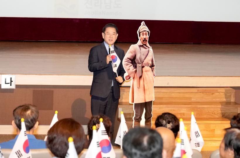 [°ø°£´º½º = ±è¼ö±Ù±âÀÚ] Àü¶ó³²µµ´Â 11ÀÏ µµÃ» ±è´ëÁß°´ç¿¡¼ ±¤º¹ 80ÁÖ³âÀ» ±â³äÇØ µµ¹Î°ú °øÁ÷ÀÚ°¡ ÇÔ²² ´ÙÅ¥¸àÅ͸® ¿µÈ ¡®µ¶¸³±º: ³¡³ªÁö ¾ÊÀº ÀüÀÀ» °ü¶÷Çß´Ù°í ¹àÇû´Ù.