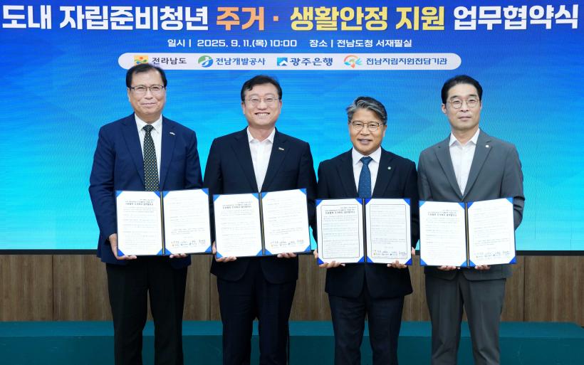 [°ø°£´º½º = ±è¼ö±Ù±âÀÚ] Àü¶ó³²µµ´Â Àü³²°³¹ß°ø»ç, ±¤ÁÖÀºÇà, Àü³²ÀÚ¸³Áö¿øÀü´ã±â°ü°ú 11ÀÏ µµÃ» ¼ÀçÇʽǿ¡¼ Áö¿ª ÀÚ¸³Áغñû³âÀÇ ÁÖ°Å¿Í »ýȰ ¾ÈÁ¤À» À§ÇÑ Àü±¹ ÃÖÃÊÀÇ ÅëÇÕ Áְź¹Áö ¾÷¹«Çù¾àÀ» Çß´Ù°í ¹àÇû´Ù.