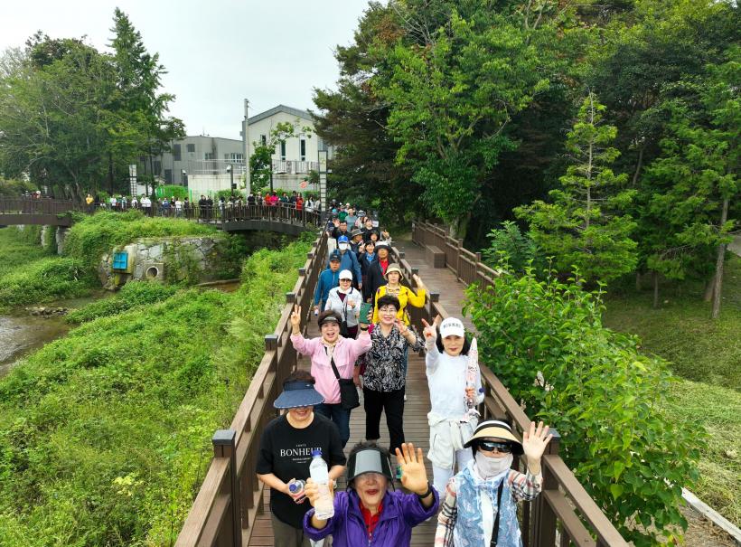 À̳¯ Âü°¡ÀÚ 160¿© ¸íÀº °¡À» Á¤Ãë°¡ ¹«¸£ÀÍÀº µ¿À±Ãµ»ýŰø¿øÀÇ ¾Æ¸§´Ù¿î dz°æÀ» Áñ±â¸ç °È±â ±× ÀÚü°¡ ÁÖ´Â Ä¡À¯¿Í ¼ÒÅëÀÇ ½Ã°£À» ¸¸³£Çß´Ù.