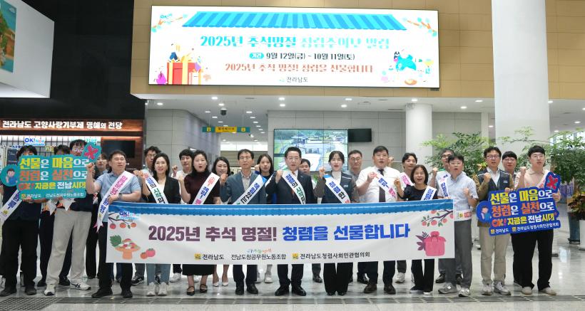 Àü³²µµ´Â ºÎÆÐ Ãë¾à½Ã±âÀÎ Ãß¼® ¸íÀý ±â°£ °øÁ÷ÀÚ ºÎÆÐ ÇàÀ§¸¦ ¿¹¹æÇϱâ À§ÇØ ¡®¼±¹°Àº ¸¶À½À¸·Î, û·ÅÀº ½ÇõÀ¸·Î¡¯¶ó´Â ¹®±¸ÀÇ Ã»·ÅÁÖÀǺ¸¸¦ Àü ºÎ¼¿¡ ¹ß·É, ûʱÝÁö¹ý Áؼö ¹× û·ÅÇÑ °øÁ÷ ¼öÇàÀ» °Á¶Çß´Ù.