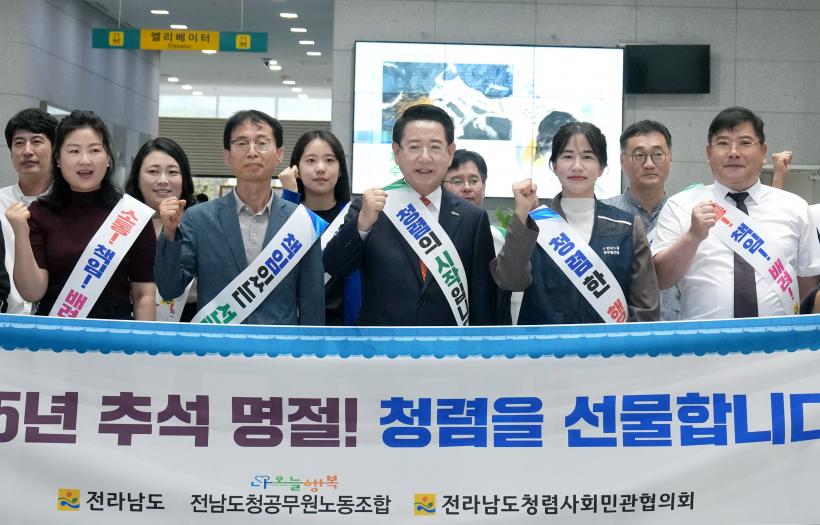 [°ø°£´º½º = ±è¼ö±Ù±âÀÚ] Àü¶ó³²µµ°¡ Ãß¼® ¸íÀýÀ» ¾ÕµÐ 25ÀÏ Ã»»ç º»°ü ÀÔ±¸¿¡¼ Ãâ±Ù Á÷¿øµéÀ» ´ë»óÀ¸·Î ¡®Ã»·Å ½Çõ Ä·ÆäÀΡ¯À» ÆîÃÆ´Ù.