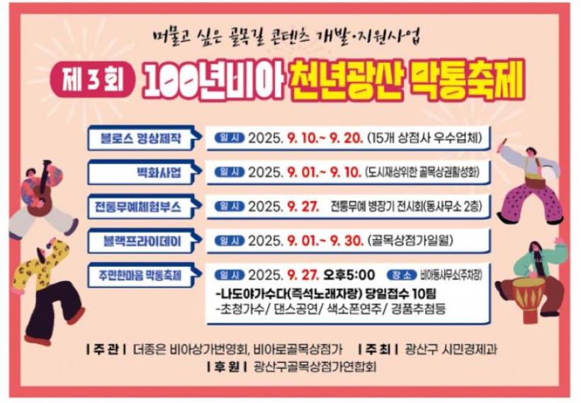 ±¤»ê±¸°¡ Áö¿øÇÏ´Â ¸Ó¹°°í ½ÍÀº °ñ¸ñ±æ ÄÜÅÙÃ÷ °³¹ß¡¤Áö¿ø »ç¾÷ Áß Çϳª·Î ¸¶·ÃµÈ ¿ù°î2µ¿(µ¿Àå ¹®Çý¿¬)°ú ºñ¾Æµ¿(µ¿Àå Àå¿ë¼º)¿¡¼´Â ¡®Á¦3ȸ ÇÔ²²¶ó¼ ÇູÇÑ ´Þµð´Ü±æ °¡À»ÃàÁ¦¡¯¿Í ¡®2025³â 100³âºñ¾Æ õ³â±¤»ê¸·ÅëÃàÁ¦¡¯°¡ ¿¸°´Ù.